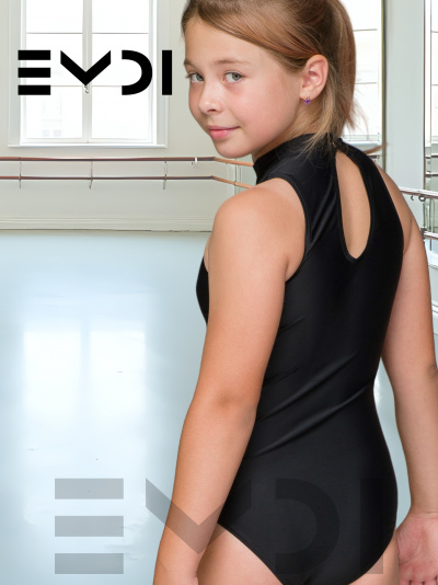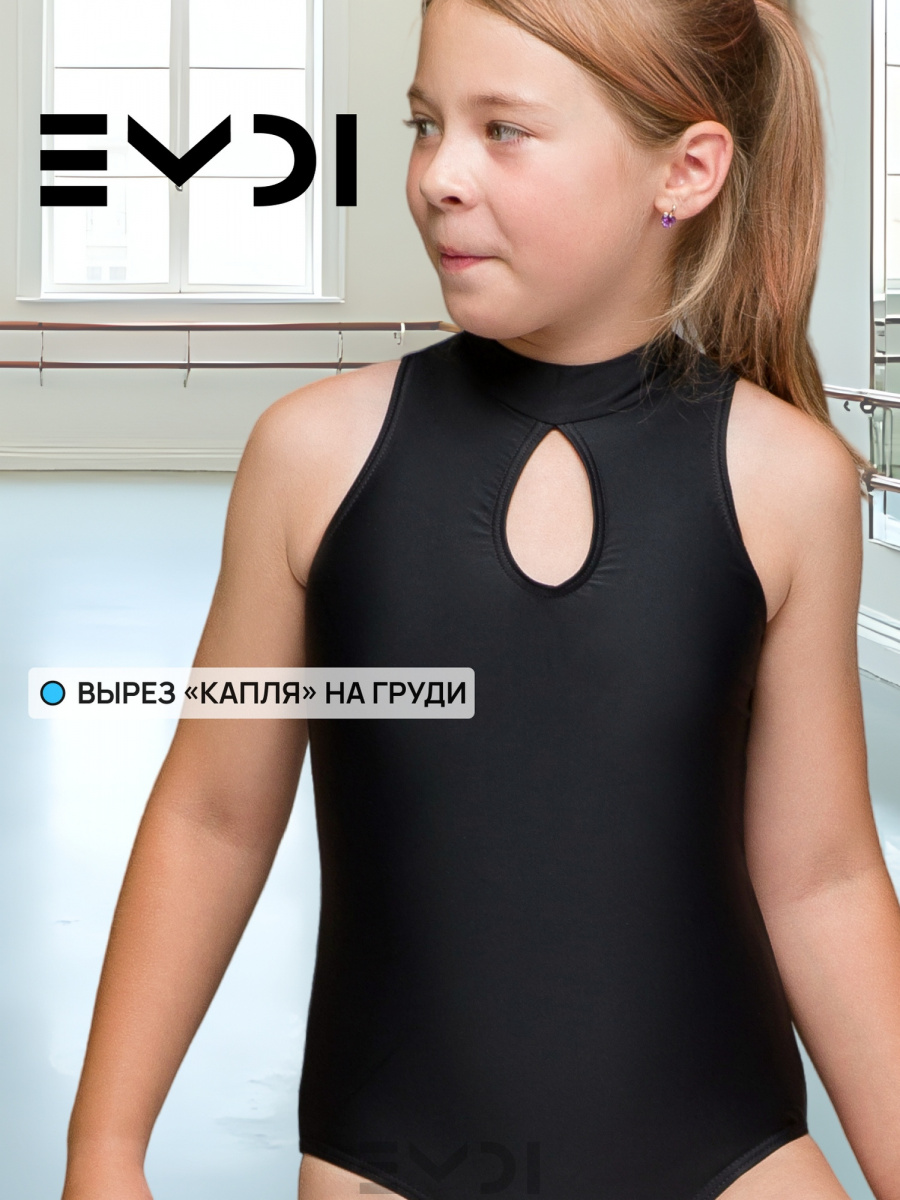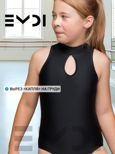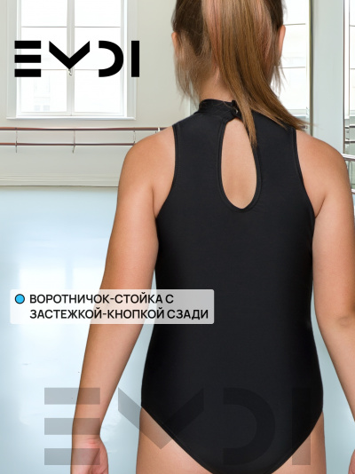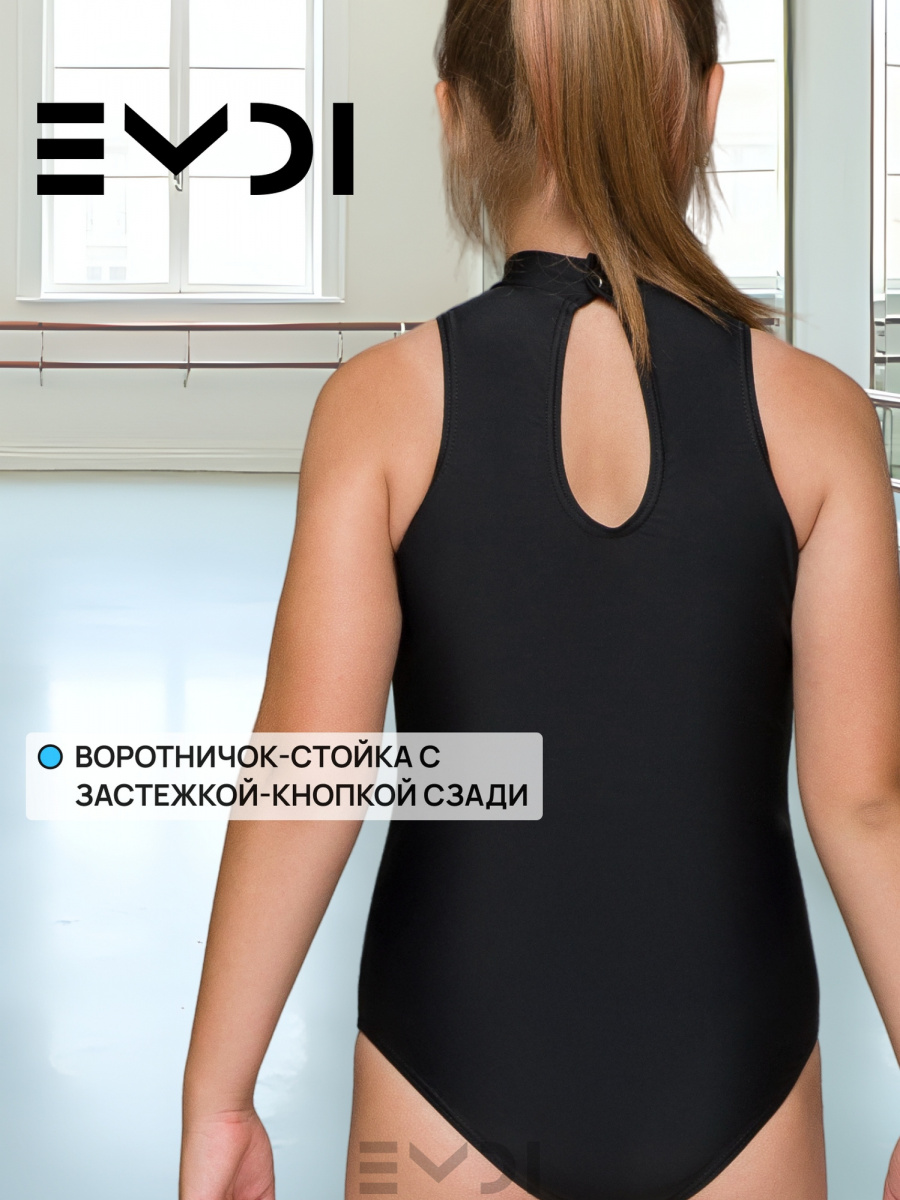 Гимнастический комбидресс с вырезом-каплей на груди. Воротничок-стойка кнопке.