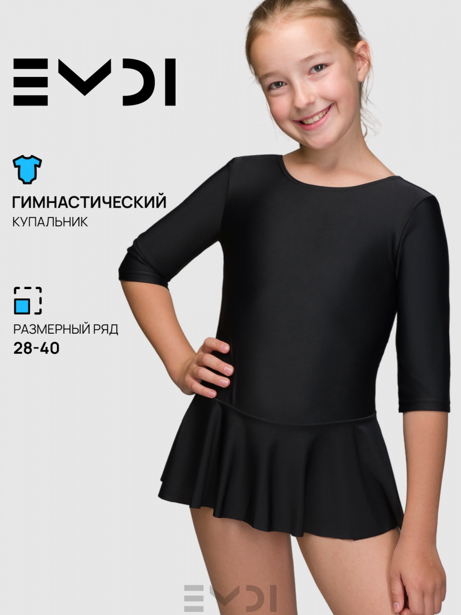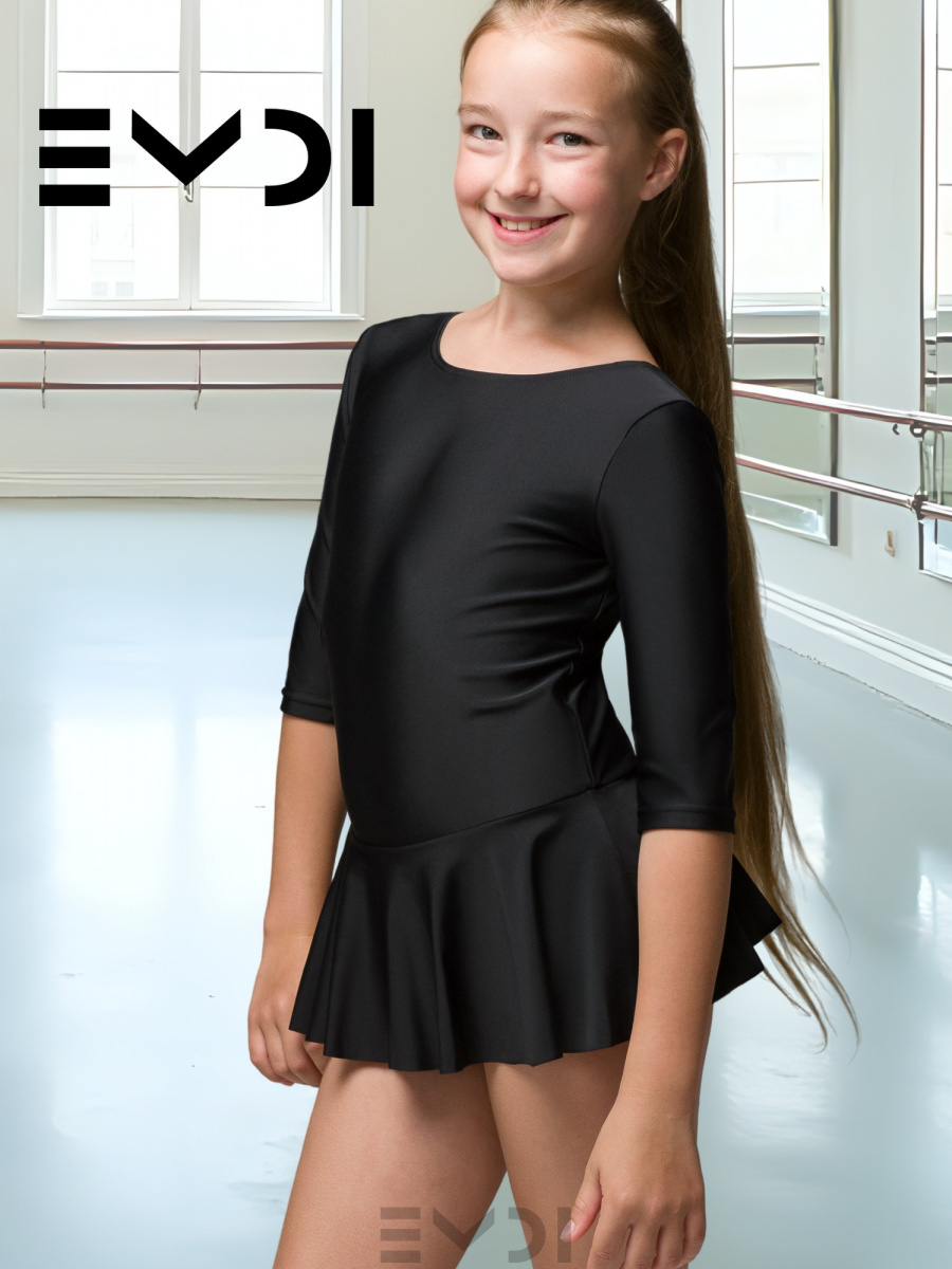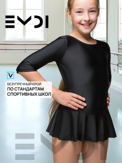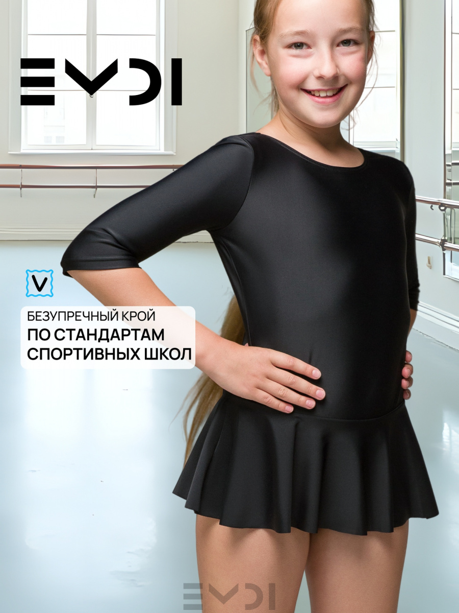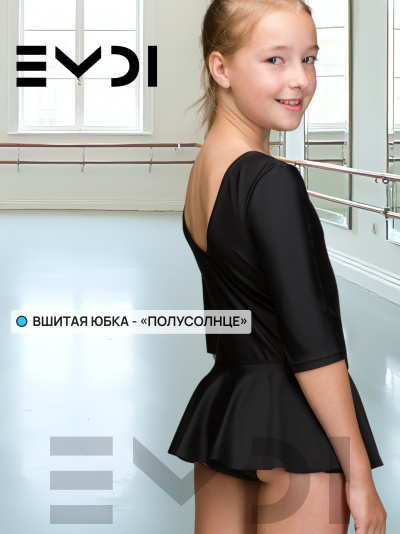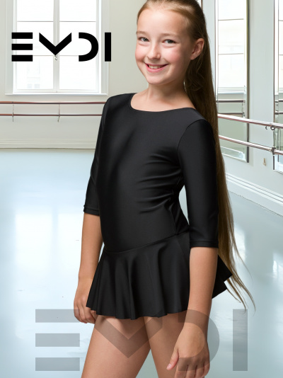 Классический гимнастический комбидресс с рукавом 3/4. Юбка-"полусолнце" вшита.