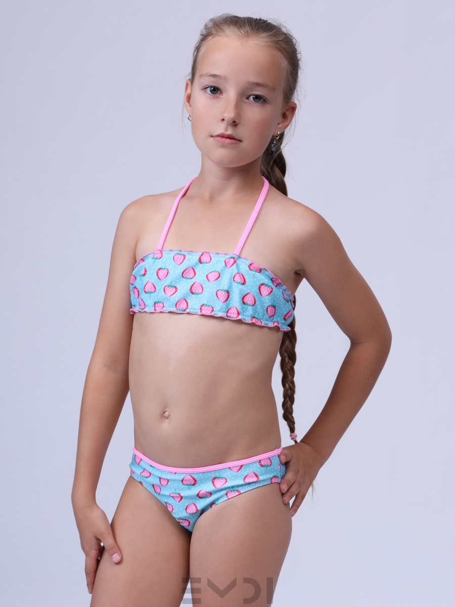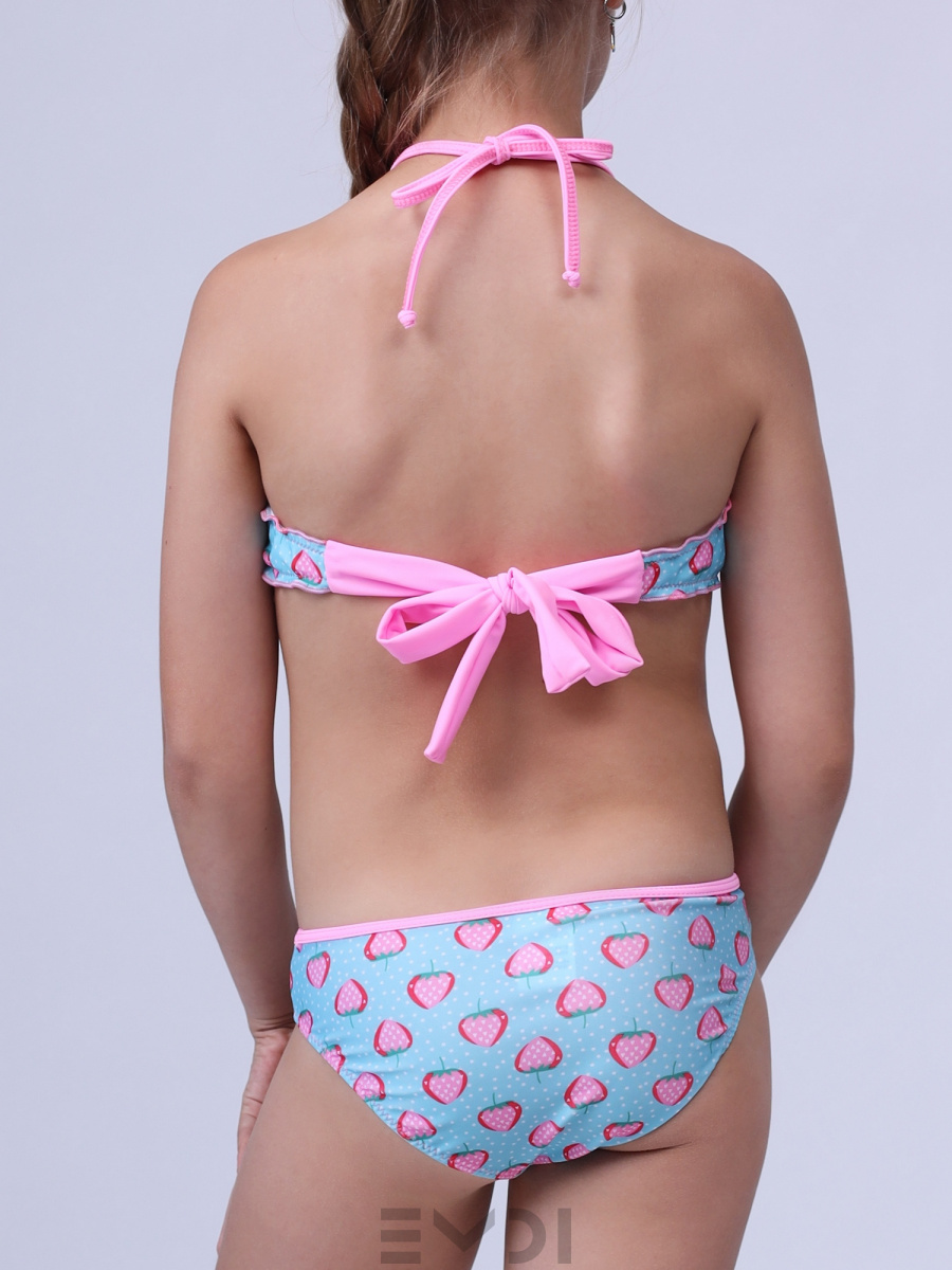 Cтильный детский раздельный купальник с "лифом-бондо" и контрастными завязками.