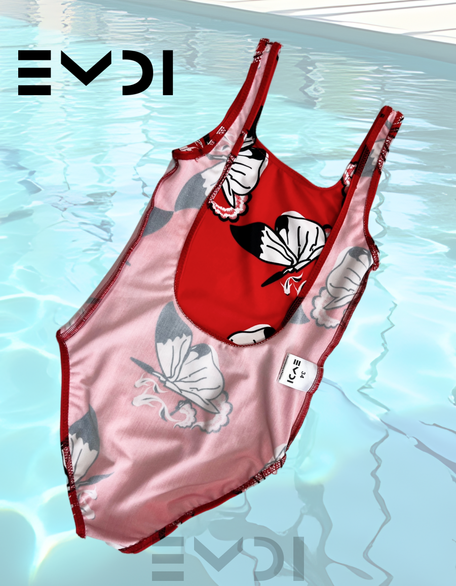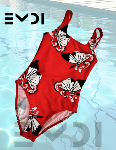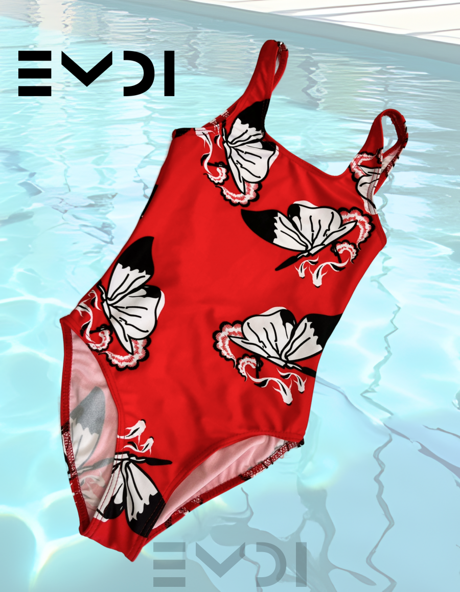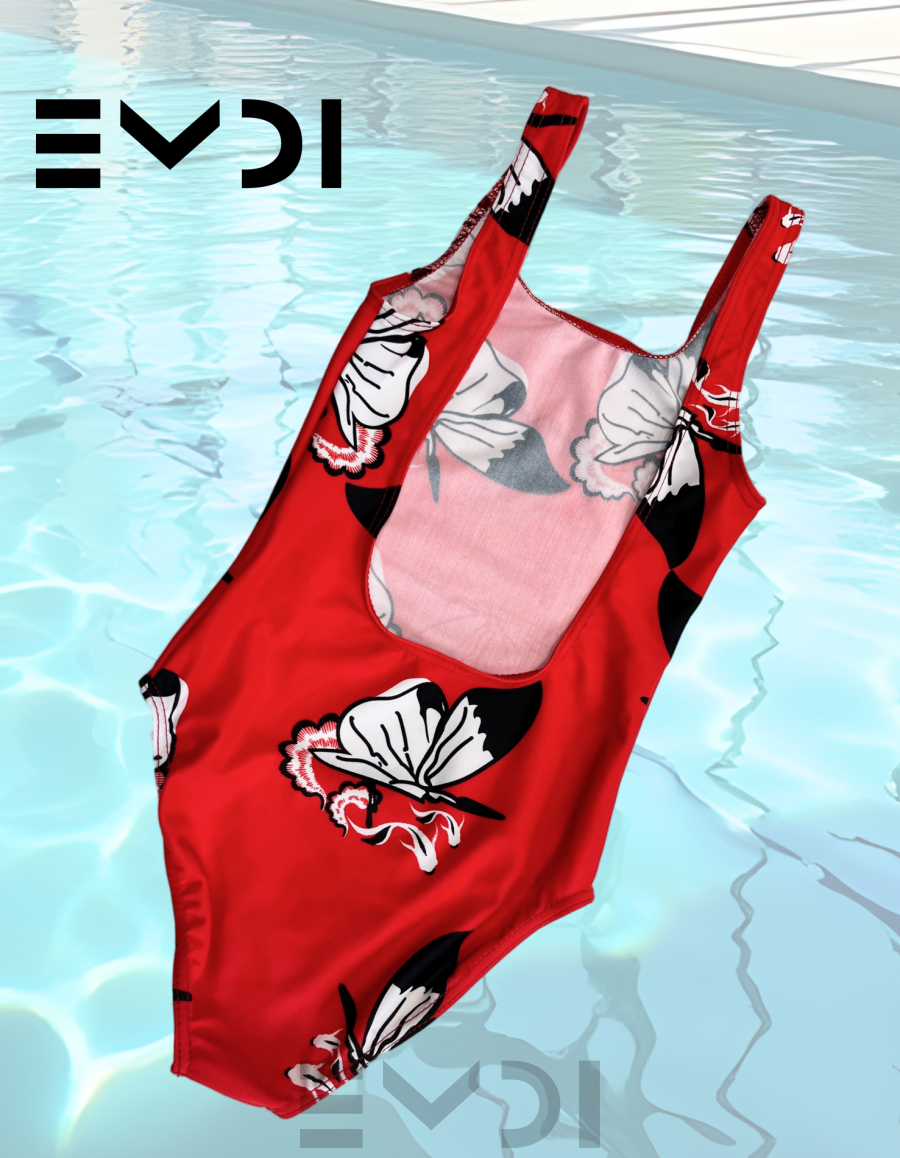 Классический летний купальник выполнен из яркого и необычного принта. Материал устойчив к морской воде.