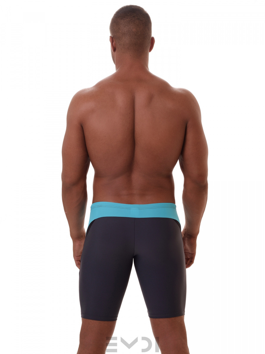 Спортивные удлиненные плавки-шорты с необычной контрастной вставкой. Пояс на резине со шнуром. Ластовица-карман. Материал устойчив к морской и хлорированной воде.