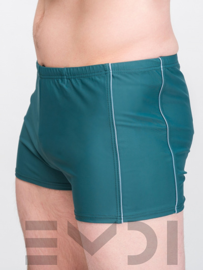 Спортивные плавки-шорты модного кроя. Украшены боковыми кантами. Пояс на резине со шнуром. Ластовица-карман. Материал устойчив к хлорированной и морской воде.