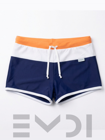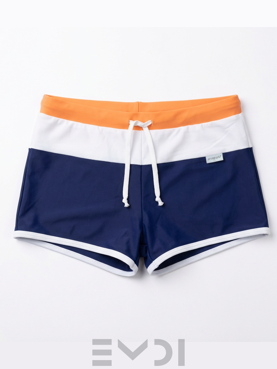 Эффектные спортивные плавки-шорты контрастного кроя. Пояс на резине со шнуром. Дублированный перед.