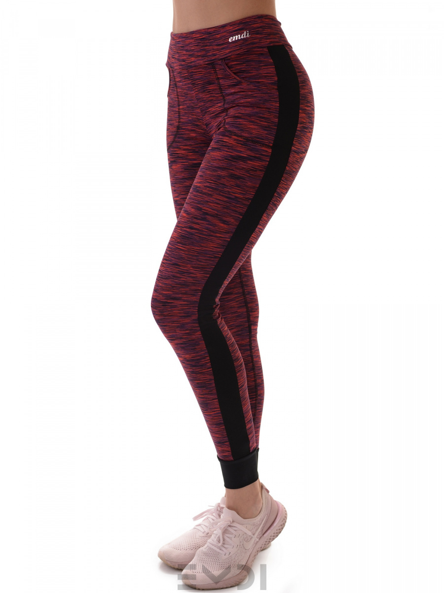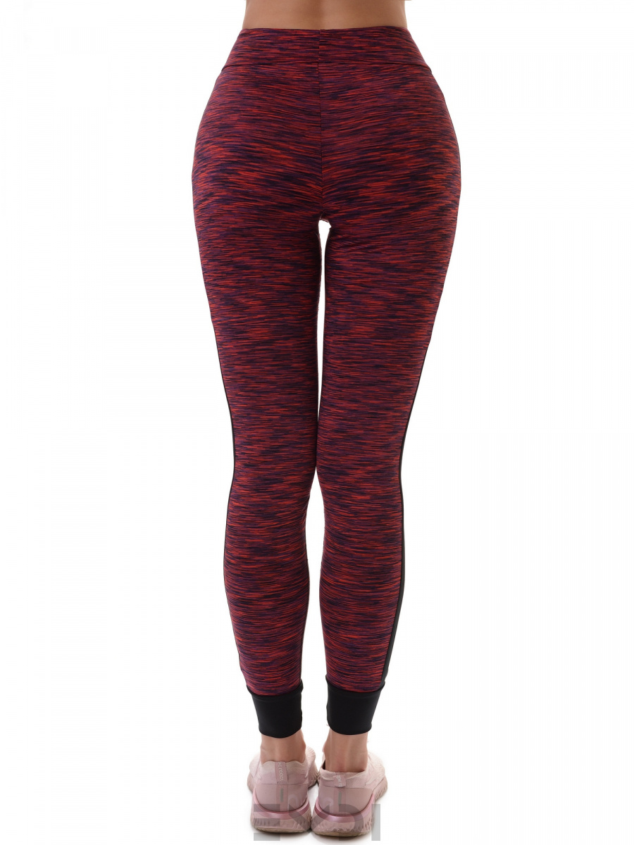 Удобные спортивные лосины актуальной расцветки с боковыми вставками на манжетах по низу. Накладные карманы.