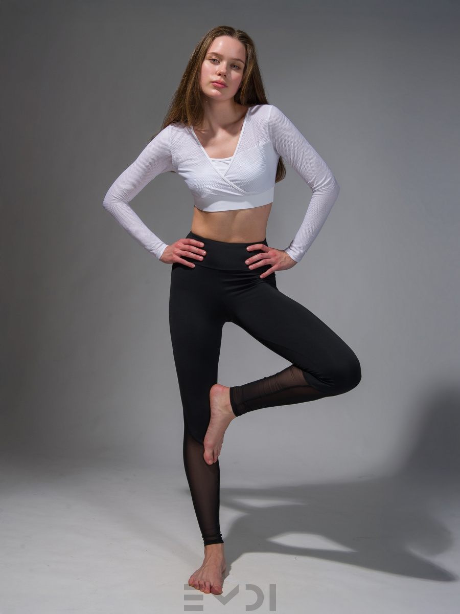 Очень красивый топ, необычный, модель отличается от спортивных однотипных товаров. Подчеркивает фигуру и очень комфортно сидит, одно удовольствие в таком заниматься. Даже когда делаю сложные упражнения с поднятием рук, не съезжает выше груди, супер!