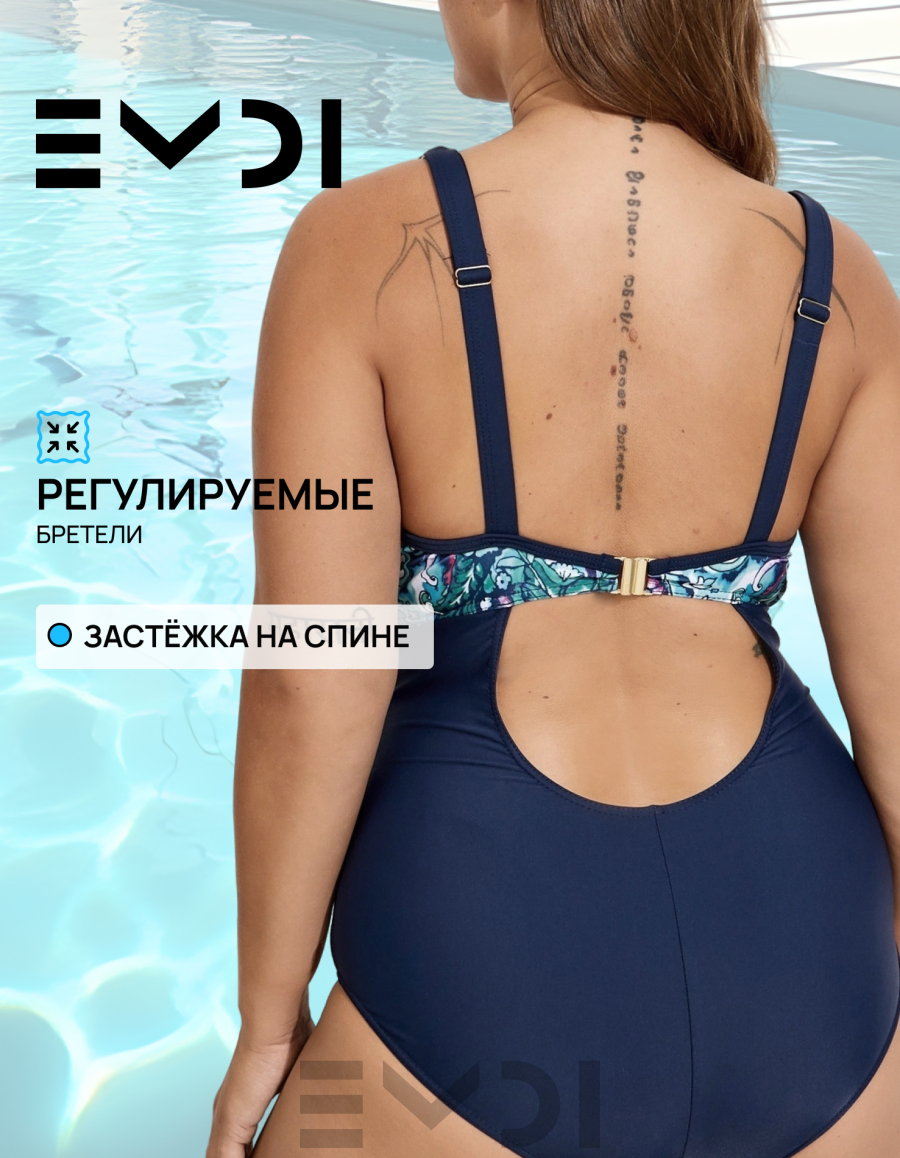 Элегантный купальник с ярким принтованным дублированным лифом.Застежка на спине,регулируемые бретели.Поддержка с помощью боковых костей.Полиамид 80 % Эластан 20%