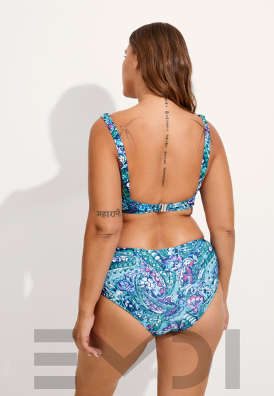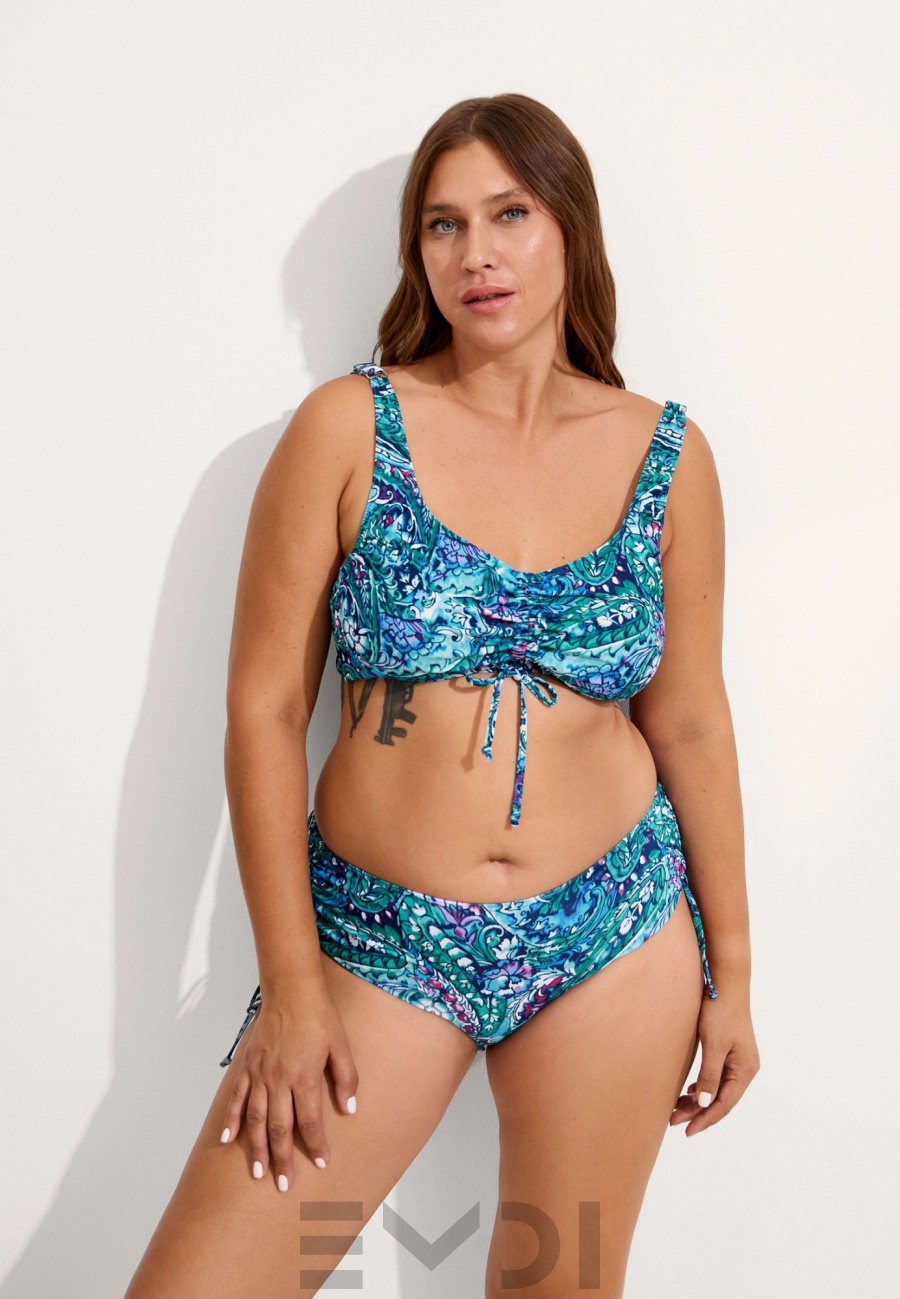 Купальник женский .Восхитительный пляжный купальник. Дублированный лиф с центральной драпировкой, что позволяет контролировать глубину выреза. Боковые кости и регулируемые бретели обеспечивают хорошую поддержку груди. Драпировка по бокам плавок позволяет менять их высоту. Материал устойчив к морской воде.
