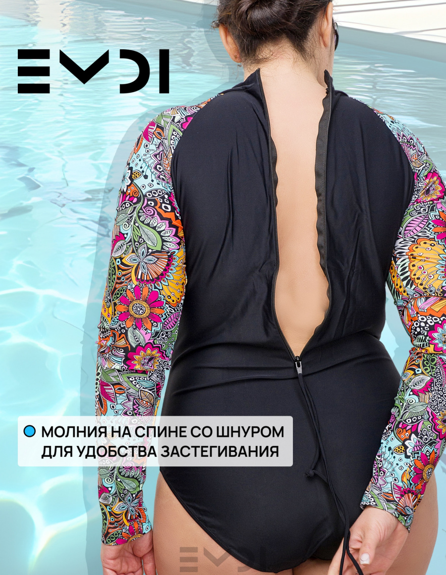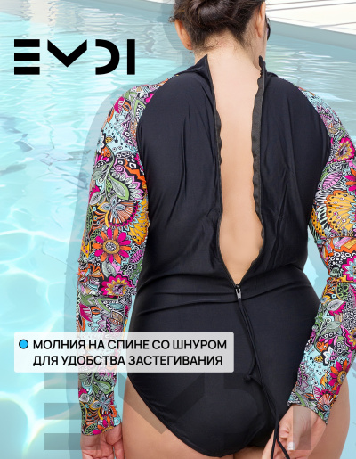 Комбидресс (купальник с длинным рукавом) для водных видов спорта. Выполнен из быстросохнущего материала, устойчивого к морской воде. Молния на спине со шнуром для удобного застегивания.состав: полиамид 80%- эластан 20%