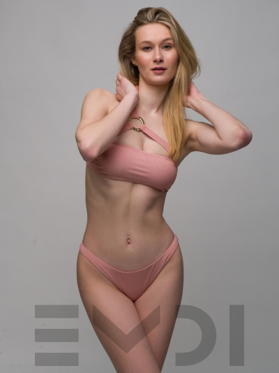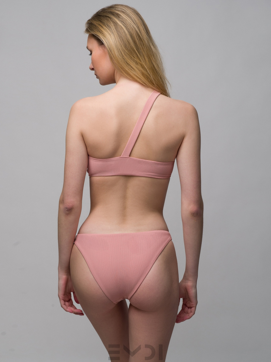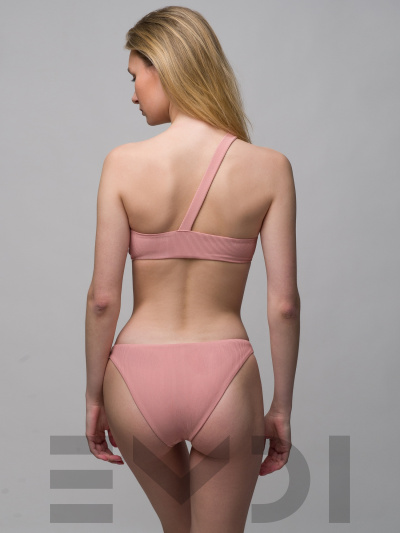 Купальник- бандо с асимметричным кроем изготовлен из самого модного полотна этого сезона. Плавки - танга с низкой посадкой. Полностью дублированный. Чашки-вкладыши. Материал устойчив к морской воде и солнечному свету.