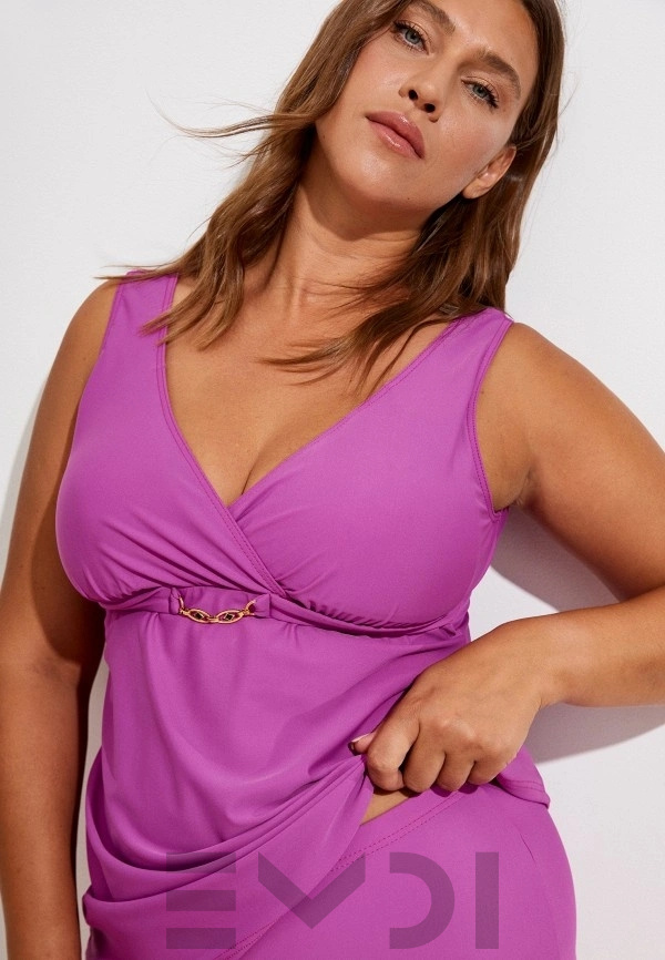 Взяла этот купальник на 48 размер, сел идеально. У меня грудь четвёртого размера и тут хорошая поддержка и утяжка за счёт чашек и резинки, ничего не вываливается. Удлинённый верх стройнит, шортики не врезаются. Танкини подчеркивает достоинства, а всё лишнее аккуратно прячет. Даже после моря цвет не полинял.