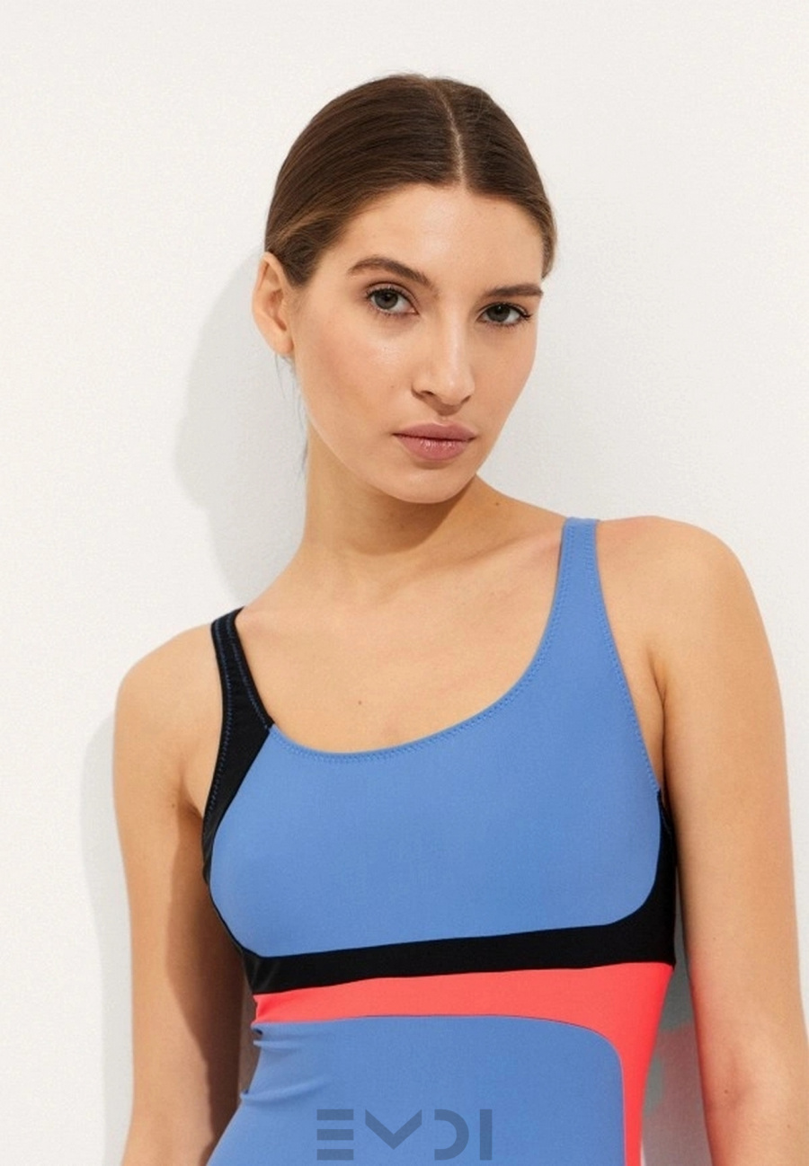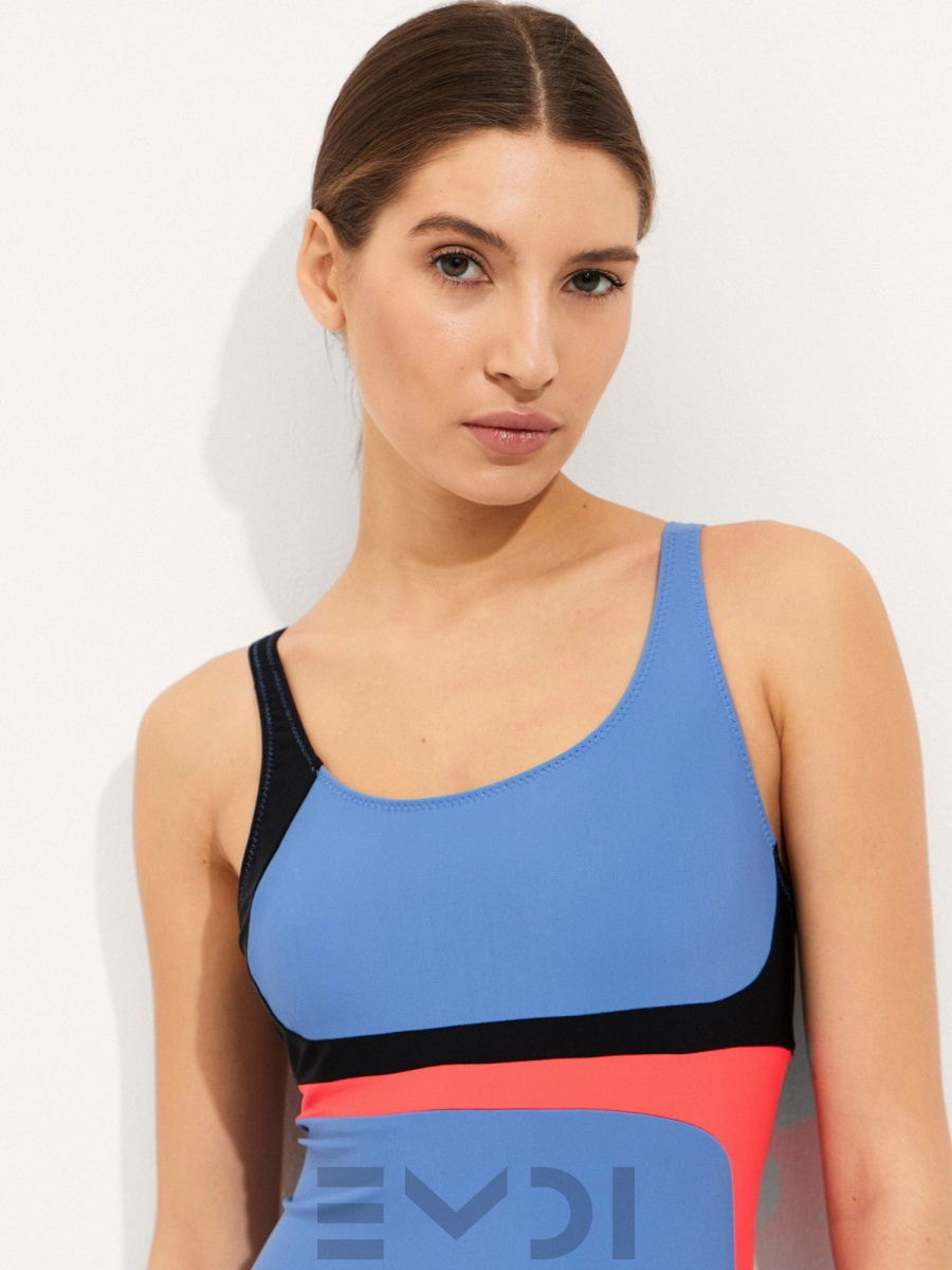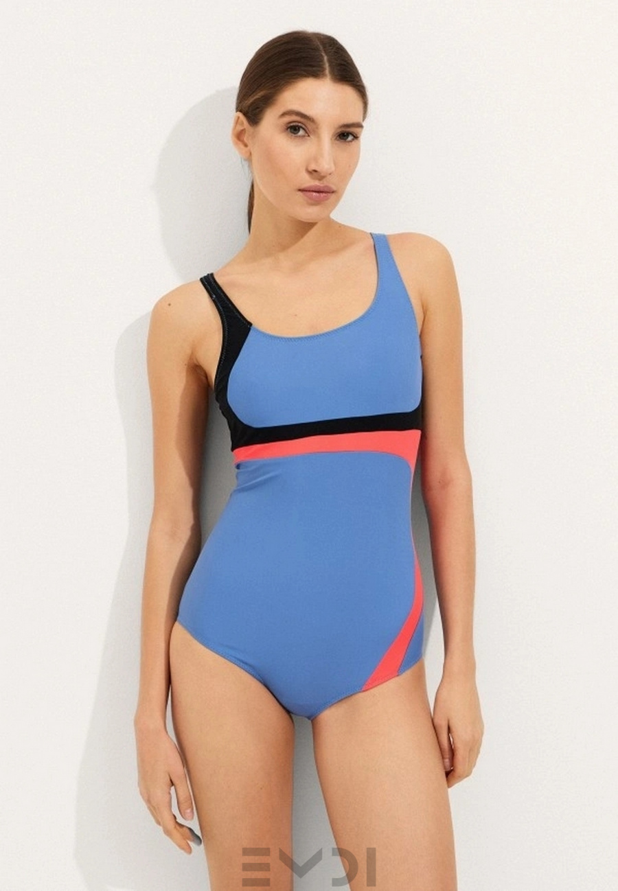 Необычный сплошной купальник оригинального асимметричного кроя. Дублированный лиф с резиной под грудью. Бретели регулируются. Материал устойчив к хлорированной и морской воде.