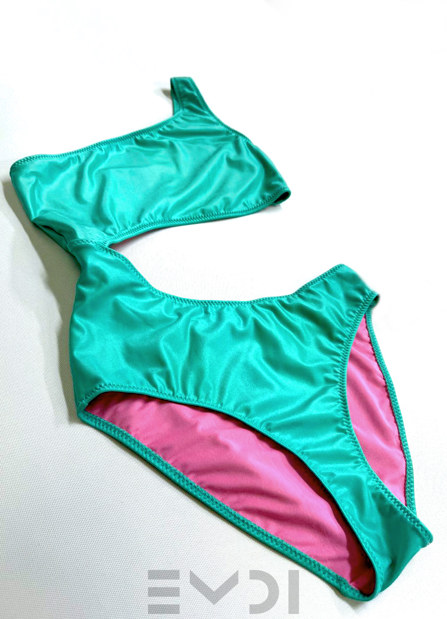 Асимметричный купальник на одно плечо из самой трэндовой ткани этого сезона под "кожу". Плавки дублированы полностью. Лиф дублирован по переду, имеются входы под съемные чашки.