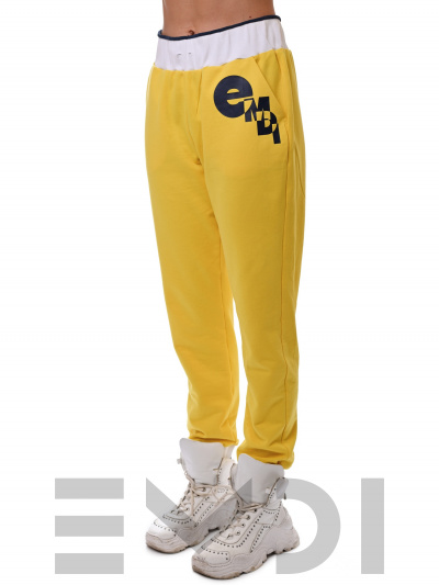 Модные и очень удобные спортивные брюки из хлопка,с контрастным поясом из широкой резины. Боковые карманы.
